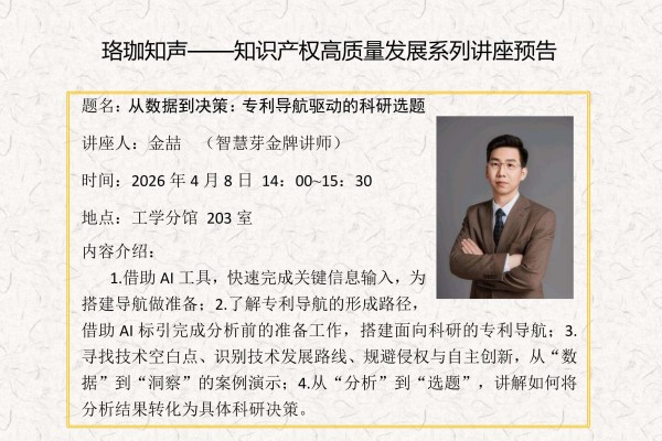 - 通知公告 珞珈知声——知识产权高质量发展系列讲座预告